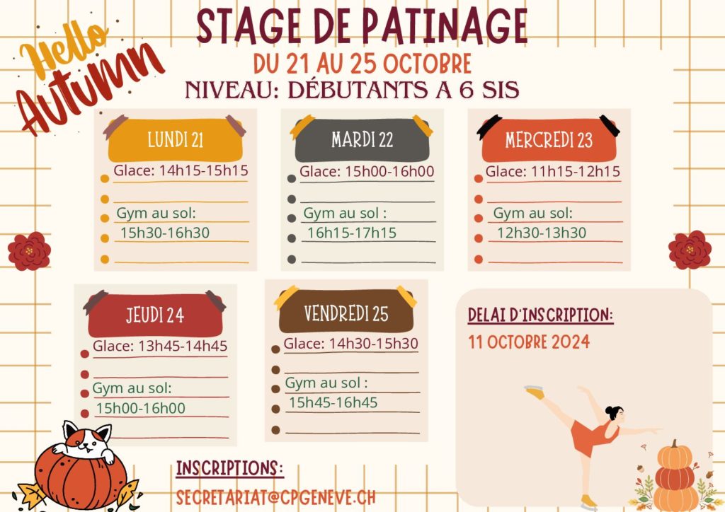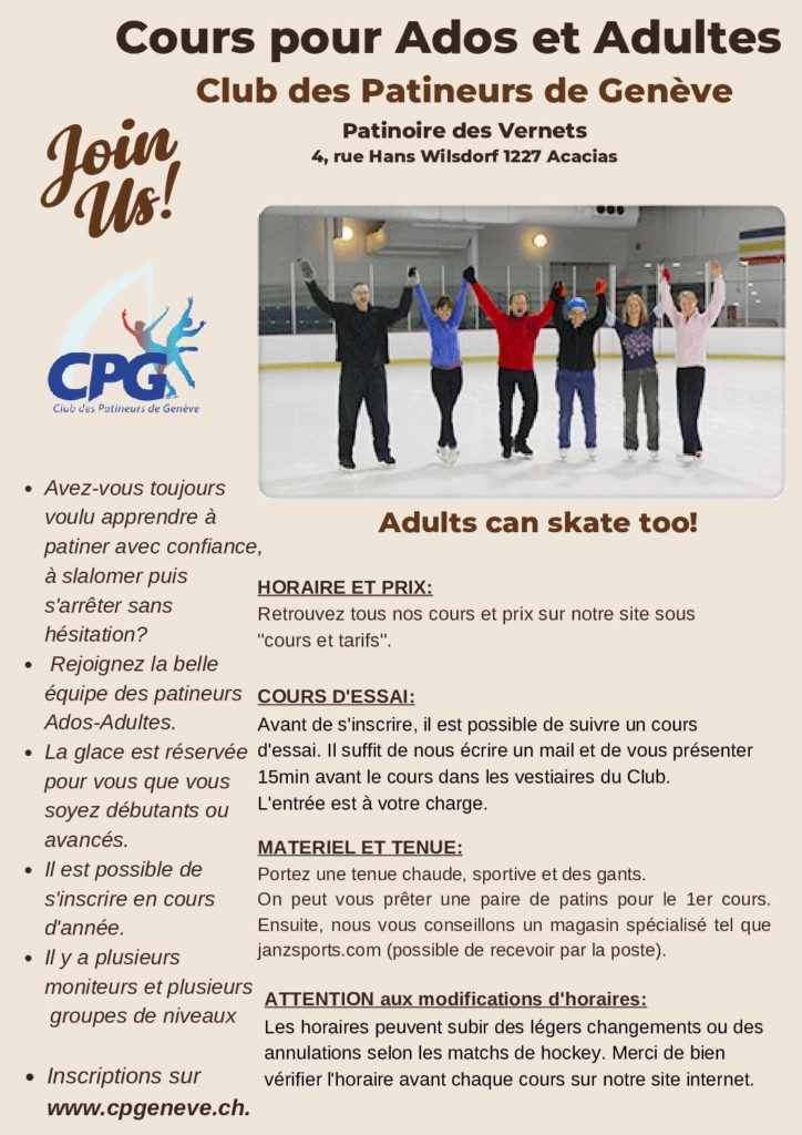 Les semaines portes ouvertes pour assister aux cours. L’accès à la patinoire est à votre charge.