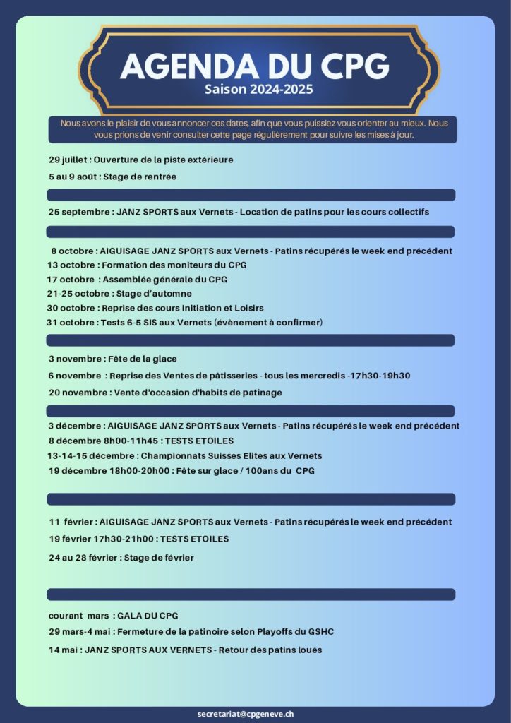 Nous avons le plaisir de vous remettre ces dates afin que vous puissiez vous organiser au mieux. Nous vous prions de venir le consulter régulièrement pour suivre les mises-à-jour.